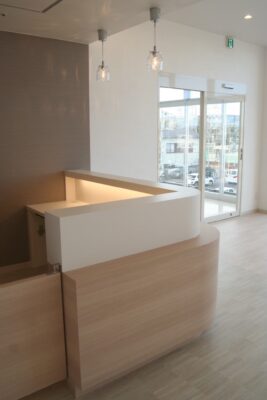 北柏の新しいショッピングモール内に開院した整形外科クリニックのインテリアデザインを担当しました。 本案件は大日向建設様による施工です。 空間全体は、明るさ・温かみ・清潔感を兼ね備えたナチュラルテイストで構成。 受付カウンター上部にはペンダント照明を配し、柔らかなアクセントとして空間にリズムを添えています。