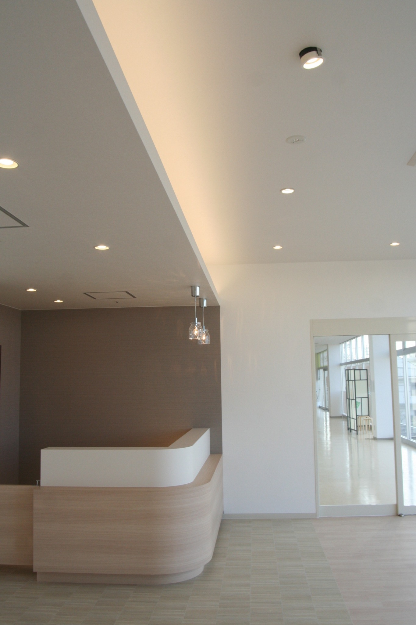 We were responsible for the interior design of an orthopedic clinic newly opened in a shopping mall in Kita-Kashiwa. The project was commissioned by Ohinata Construction. The space is composed in a natural style that emphasizes brightness, warmth, and a sense of cleanliness. Pendant lighting above the reception counter serves as a subtle accent, adding rhythm and softness to the overall atmosphere.