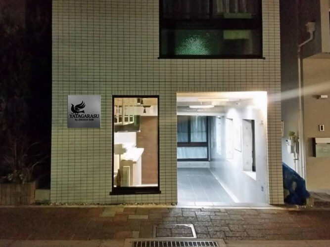 奈良県吉野の日本酒ブランド「八咫烏」を提供する立ち飲みバー「ヤタガラス」のインテリアデザイン、ロゴ、名刺、サインデザインを担当しました。白木のカウンターと、通りからの見通しの良い構成により、女性一人でも気軽に立ち寄れる開かれた雰囲気を意識。 吉野の酒の魅力を引き立てる、シンプルで凛とした空間を目指しました。